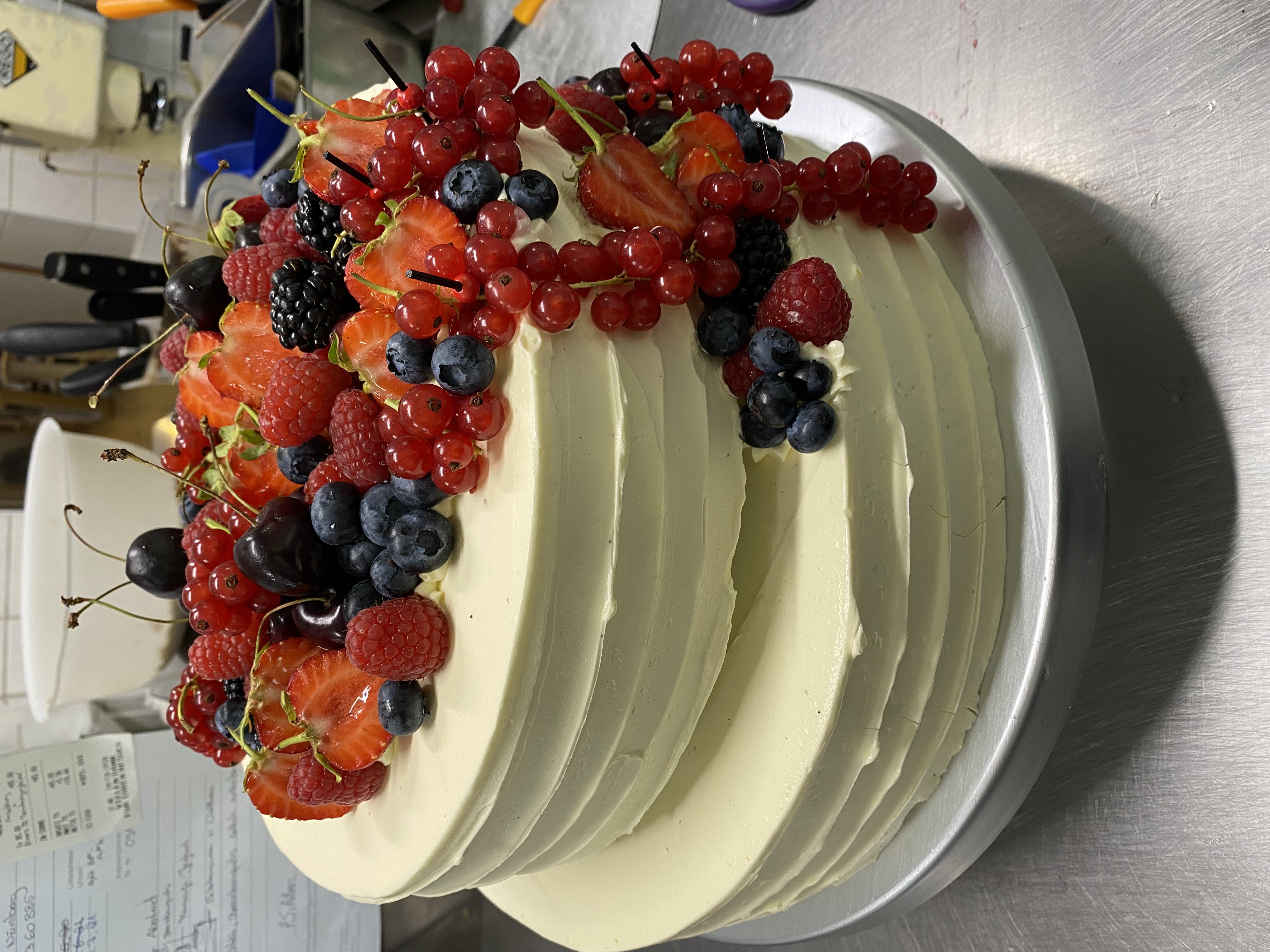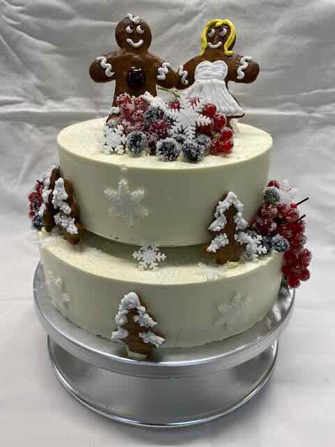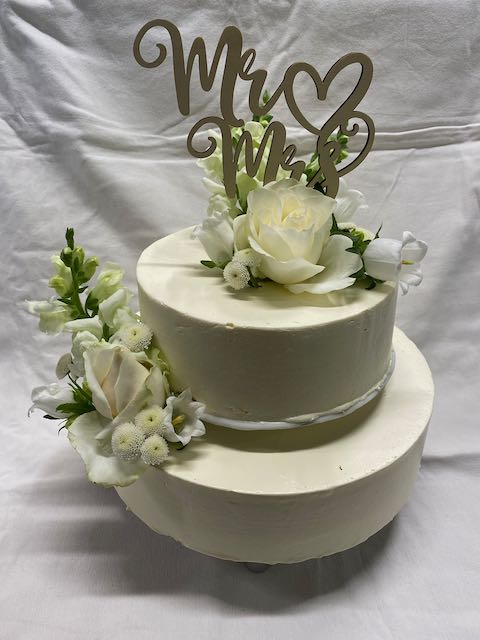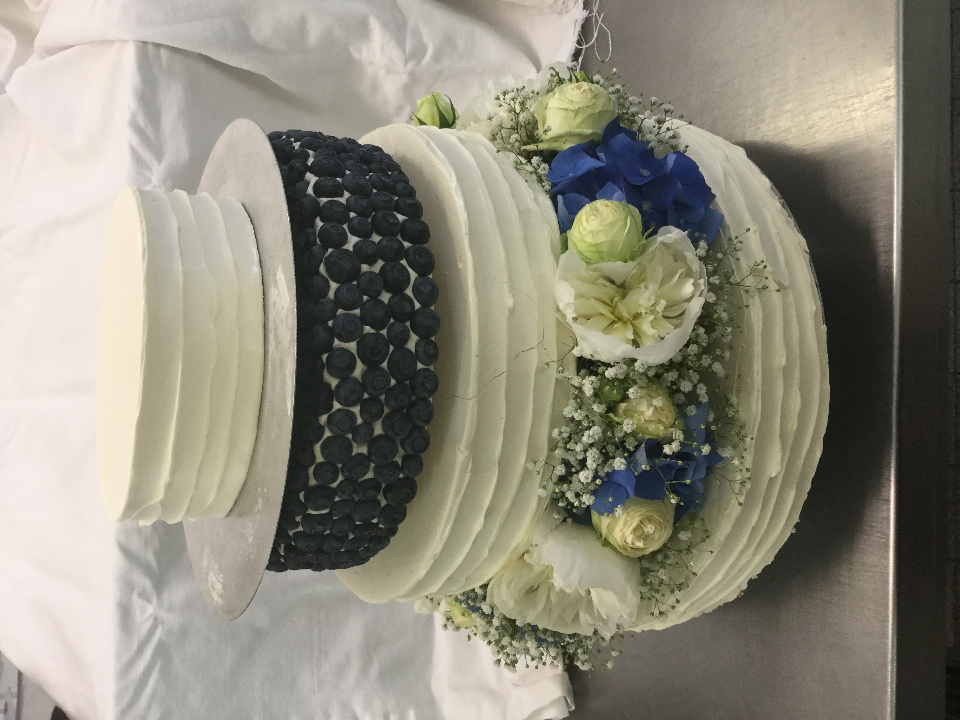 Torten und dazwischen Platten mit Steckmoos, so daß z.B. der Florist hier für die Dekoration sorgen kann.